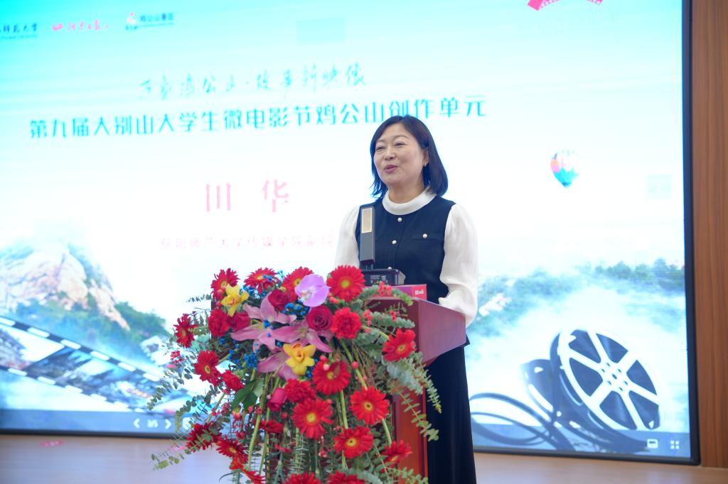 田华首先欢迎各高校师生参与鸡公山限时创作单元,感谢河南日报社和信阳鸡公山风景区经营管理有限公司的支持,然后从技术与视角两个维度阐释了本赛事的双重新意,并期待青年学子以独特视角挖掘鸡公山的自然之秀与人文之魂,创作出既有技术锐度又有人文温度的佳作。