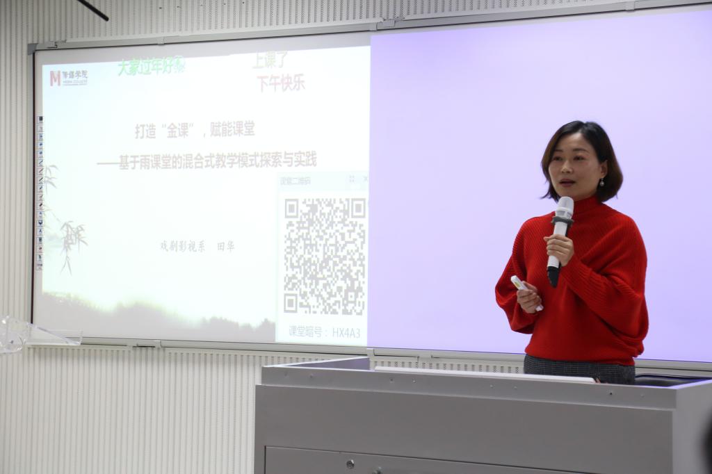 刘想如首先对williamhill中国近两年来课程思政教学活动的开展情况做了全面回顾。紧接着,williamhill中国戏剧影视系主任田华结合个人的校级“课程思政”项目进展情况,从三个方面介绍了自己的创新经验与做法。田华带领老师们进入“雨课堂”智慧教学小程序,对其各个功能进行了体验和使用,展示了智慧课堂的教学优势。在教学设计方面,她将知识目标和育人目标相结合,既点燃学生学习热情,又引导学生形成正确的价值观和意识形态。在课程教学内容上以意境为例,把思政内容融进教学过程,激发学生对中华优秀传统文化的热爱,提升民族自豪感。在“课程思政”教学创新的研讨环节,各小组热烈讨论,踊跃发言。广播电视系副主任冯莉颖说到要及时进行新的教学方式和教学模式的学习与创新,以适应知识传播从碎片式到集群式、从仓储式到媒介型的转变。动画系赵永彬老师谈到自己在《中外美术史》的教学中,大力培养学生的家国情怀,增强学生的文化认同和文化自信,用生动的个人经历告诉学生莫要盲目崇拜西方文化。