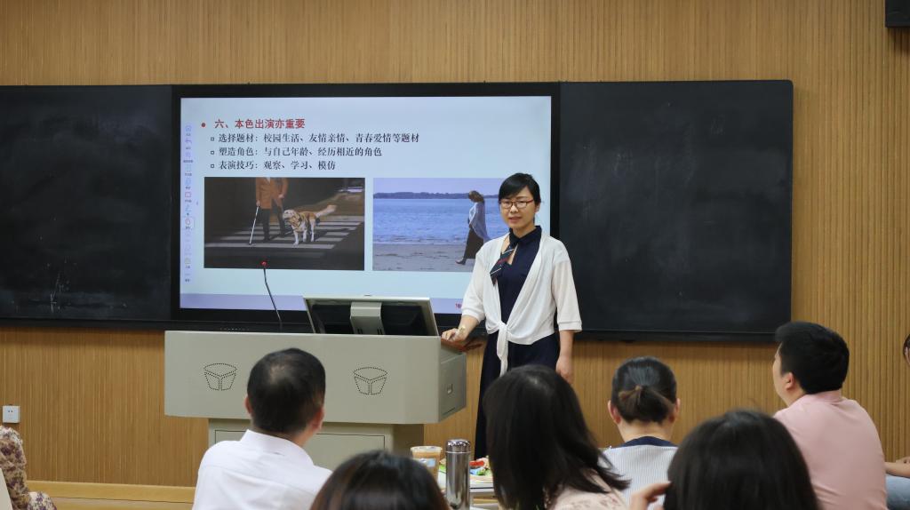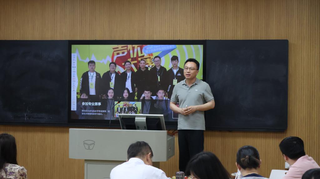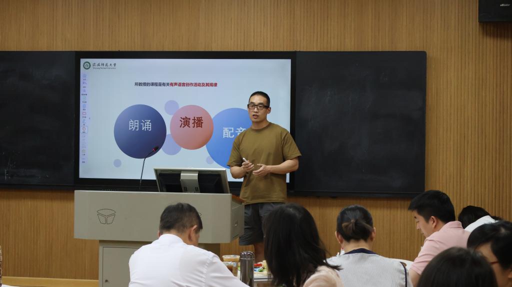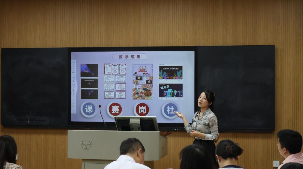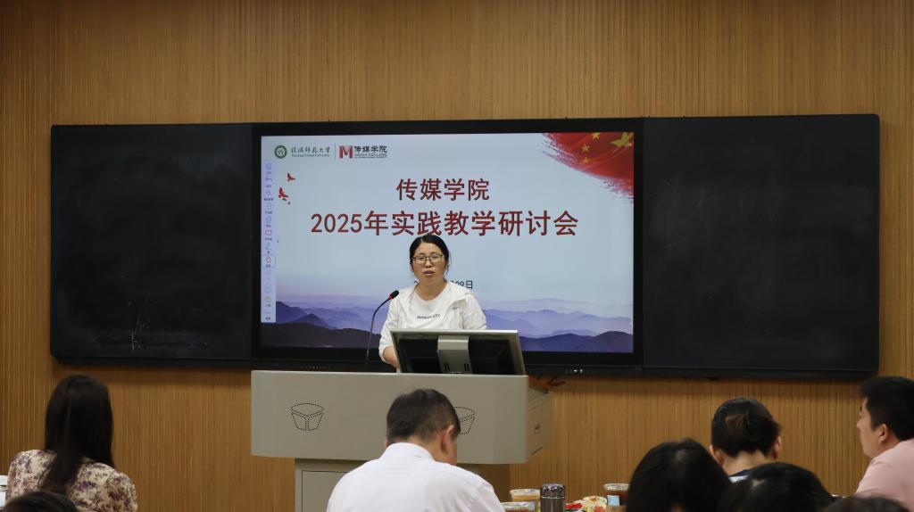 会议第一阶段,广播电视编导、动画、戏剧影视文学、播音与主持艺术四个专业教师代表依次分享实践教学案例。广播电视编导专业聚焦行业前沿,结合社会热点与技术革新优化实践课程设计;动画专业以“课、赛、岗、社”联动模式对接大别山文化资源,丰富实践创作成果;戏剧影视文学专业围绕剧本创作等课程,进行实践教学探索;播音与主持艺术专业借助AI大语言模型训练,提升实践创作能力。