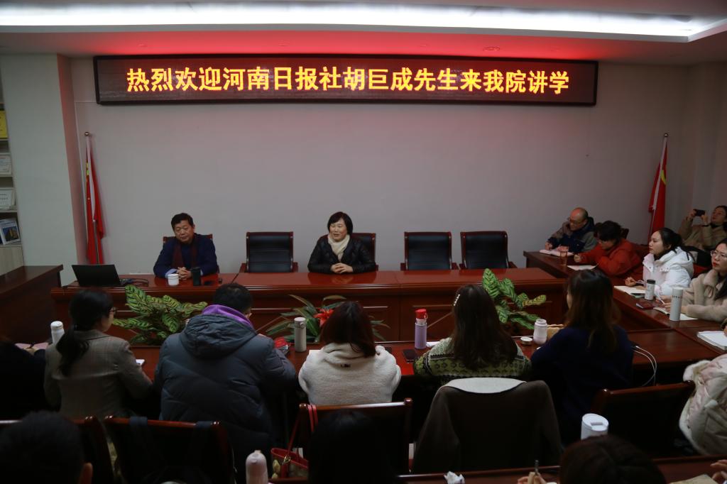 12月2日下午,河南日报报业集团驻信阳记者站站长胡巨成先生应我院邀请,在社科楼311会议室作“怎样讲故事”专题讲座。2020级广播电视专业硕士研究生与部分老师聆听了讲座,讲座由院长焦素娥教授主持。