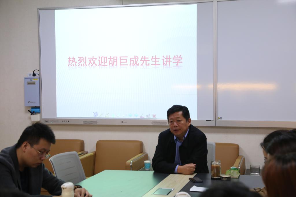2019年10月22日上午,河南日报报业集团驻信阳记者站站长胡巨成先生应邀在社科楼104教室为我院2018级研究生作题为“如何写作,如何讲故事”的专题讲座。