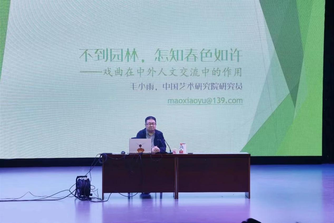 讲座伊始,毛小雨博士回顾了戏曲在中国传统文化中的重要地位,以及其在中外文化交流历史中所扮演的关键角色。他指出,戏曲以其独特的表演形式、丰富的文化内涵和深刻的情感表达,逐渐成为中国传统文化对外展示的一张重要名片。