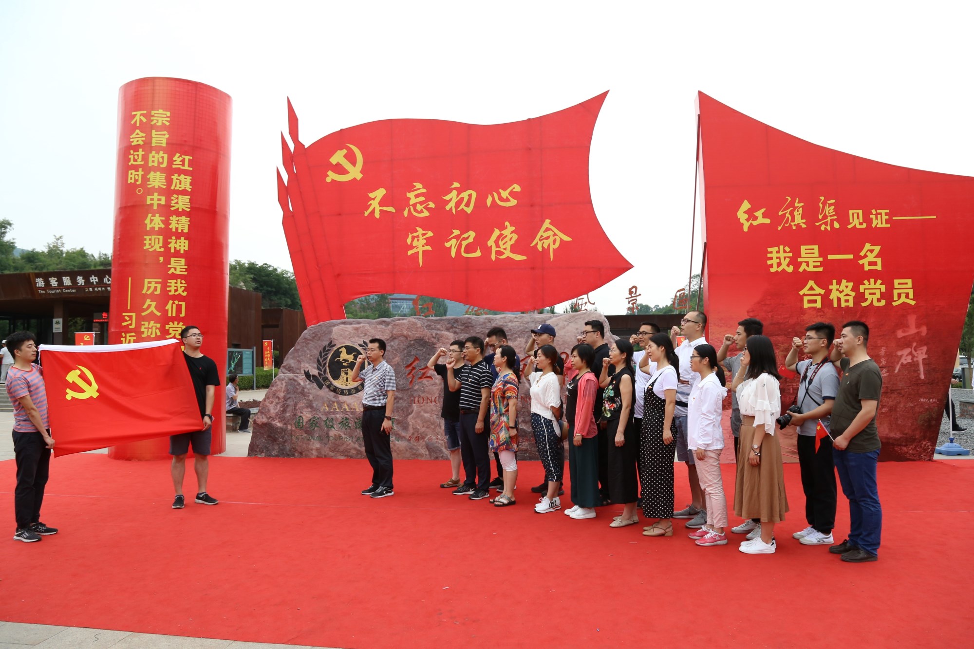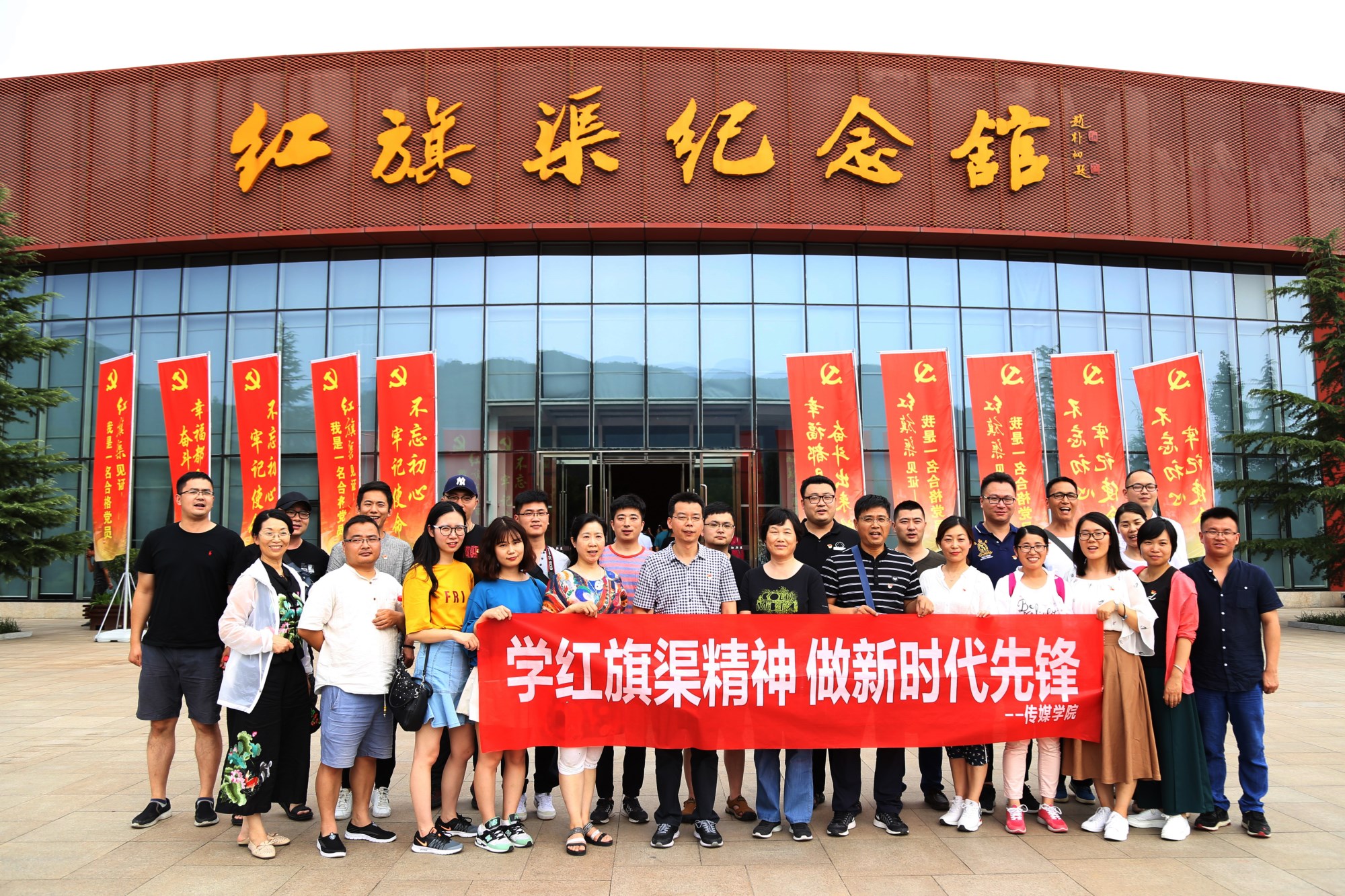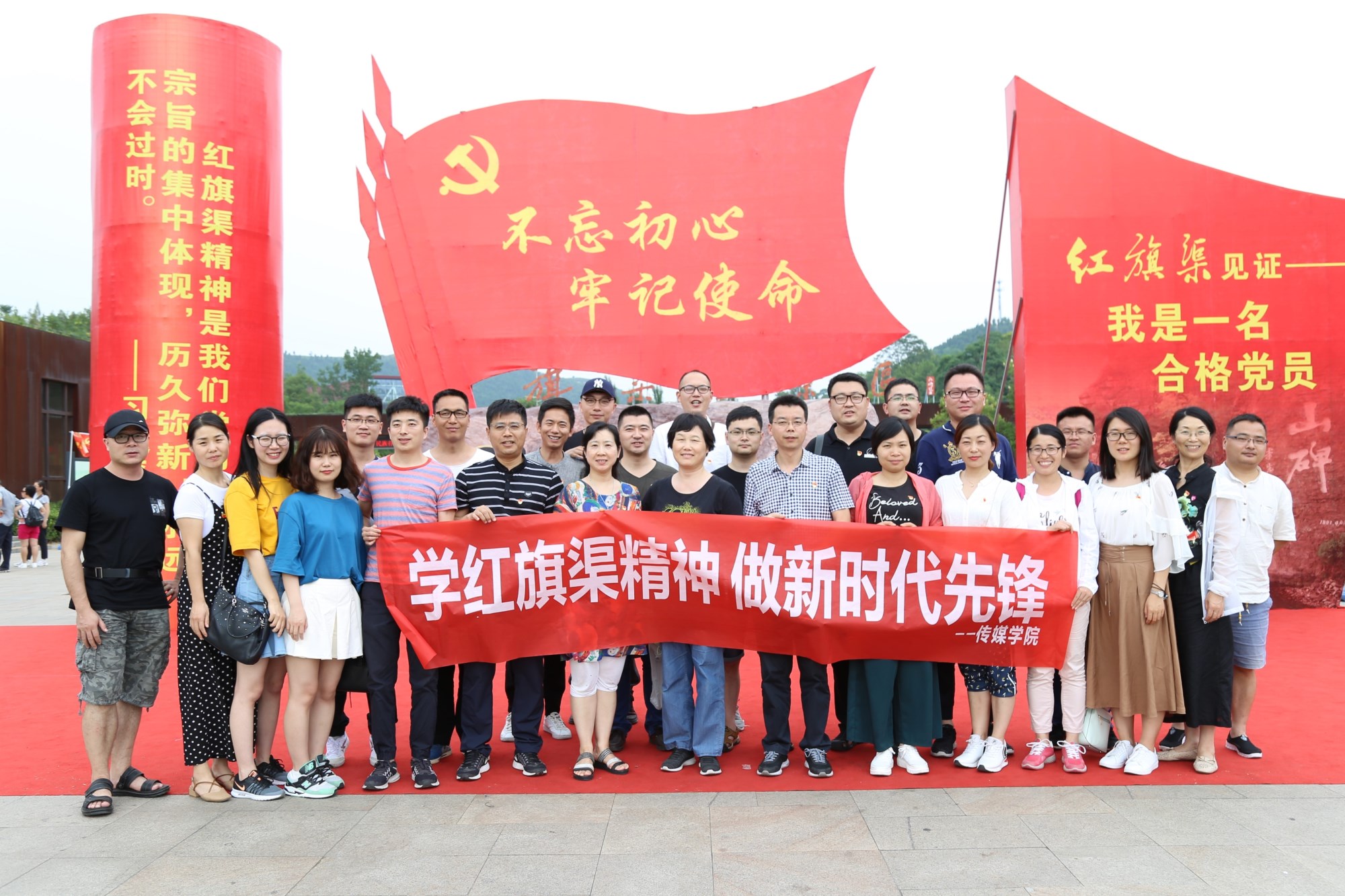 6月30日,在红旗渠纪念馆,同志们通过展览回顾了林县人民在县委书记杨贵的带领下宁苦战不苦熬,战天斗地,历时十年建设红旗渠的艰辛过程。教工党员们通过重温入党誓词、唱红歌等形式庆祝党的97周年生日。7月1日,教职工党员们沿着红旗渠主干渠和一干渠河道,一步步追寻先辈的理想信念和拼搏精神。