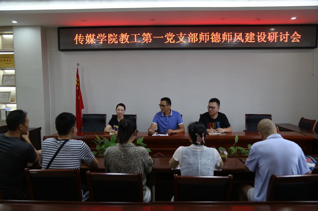 组织委员张杰同志认为,在新时代媒介形态发生了根本变革,在播音与主持艺术专业领域,党的教育工作者要以开放的心态关注各种新的艺术形式,并吸收到党建和专业教育中。她举例说,像快闪原本是一种具有草根性的网络文化,由于形式新颖,迅速在年轻人群体中流行开来。在中国经过改造以后,它成为一种传播社会主义核心价值观的重要艺术载体,在一些重大节日庆典活动中被各级主流媒体广泛采用。今后第一党支部将考虑探索各种新的艺术手段,把专业技能的训练与家国情怀的熏陶结合起来。宣传委员张衡同志说,今年是新中国成立70周年,信阳师范学院也进入升大学的关键阶段,第一党支部要以专业能力为学校的各项工作提供服务,为学校的发展作出贡献。一些年轻的党员同志也结合自己的个人专长,探讨了党建与专业发展相互促进的路径和方法。
