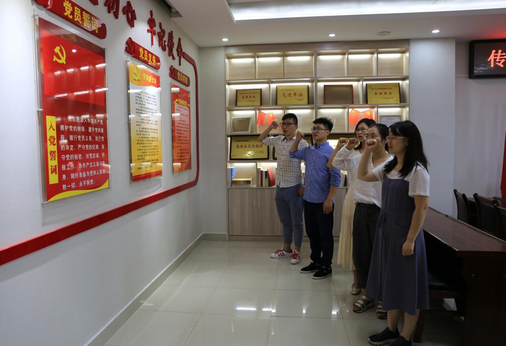 “我志愿加入中国共产党……”,面对鲜红的党旗,高举右拳,话语铿锵地重温入党誓词的活动拉开了研讨会的序幕。在党旗的见证下,全体党员干部重温了自己对党忠诚的铮铮誓言,表达了“不忘初心、牢记使命”的信念和决心。大家纷纷表示,将始终牢记入党誓词,牢记党和人民的重托;强化党建引领,真抓实干,勇于担当,切实在高等教育工作中发挥好党员干部的先锋模范作用,做好人生导师,发挥模范表率作用。研讨会的第二项议程是学习新时代优秀教师代表的光辉业绩,研讨作为高校教师的担当和作为。冯莉颖同志与支部党员同志分享了《“90后”特岗教师的诗和远方》,面对艰苦、简陋的工作环境,特岗教师任明杰没有退缩,更没有安于现状,而是通过积极作为和创意改造,让一间废弃的仓库变成了汇聚正能量、充满感召力的雅致居所。任明杰老师的事迹,让在座的每一位党员老师动容。李杏林同志说,作为教师,应该以自己优秀的人格魅力、良好的生活作风感召学生,润物无声,成风化人,真正把教育事业理想作为毕生追求,任明杰老师将陋室变仙居,将基层教育做得上乘,而正是因为有了万千任明杰这样的老师,才能让教育公平化走得更深更远,才能筑牢师德师风的根基。冯莉颖说任明杰老师认真乐观的态度让人感动,他不安于现状,在基层教学岗位上发挥光和热,值得广泛宣传和学习。郑坤同志说,任明杰老师为广大教育战线的同仁树立了榜样,这种不畏艰难困苦、扎根一线的作风值得推广。陈莉同志说,师德师风立足于小事、体现在日常,每一件工作都是我们肩负新时代教育使命的重要工作。黄国玲同志表示,任明杰老师的一言一行都在树立“学为人师、行为世范”的良好风范。