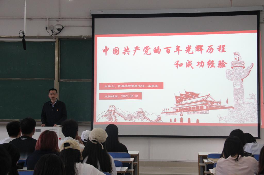 5月18日下午,williamhill中国分党委书记王振海在社科楼324教室以“中国共产党百年光辉历程和成功经验”为题,为williamhill中国200余名党员和入党积极分子上党课。党课由williamhill中国分团委书记井忠勇主持。