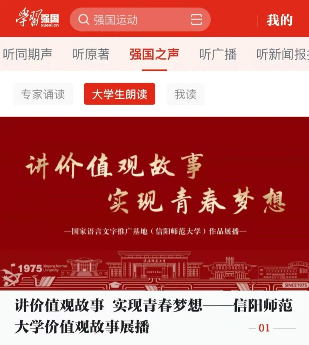 “讲价值观故事,实现青春梦想”系列朗诵作品的创作,旨在把思想政治教育与学生的专业实践紧密结合起来,让学生在专业学习的过程中受教育、长才干、做贡献,努力培养一批“四个故事”的主讲人、主诵人与传播人。(审核:李诗雨、陈长旭)
