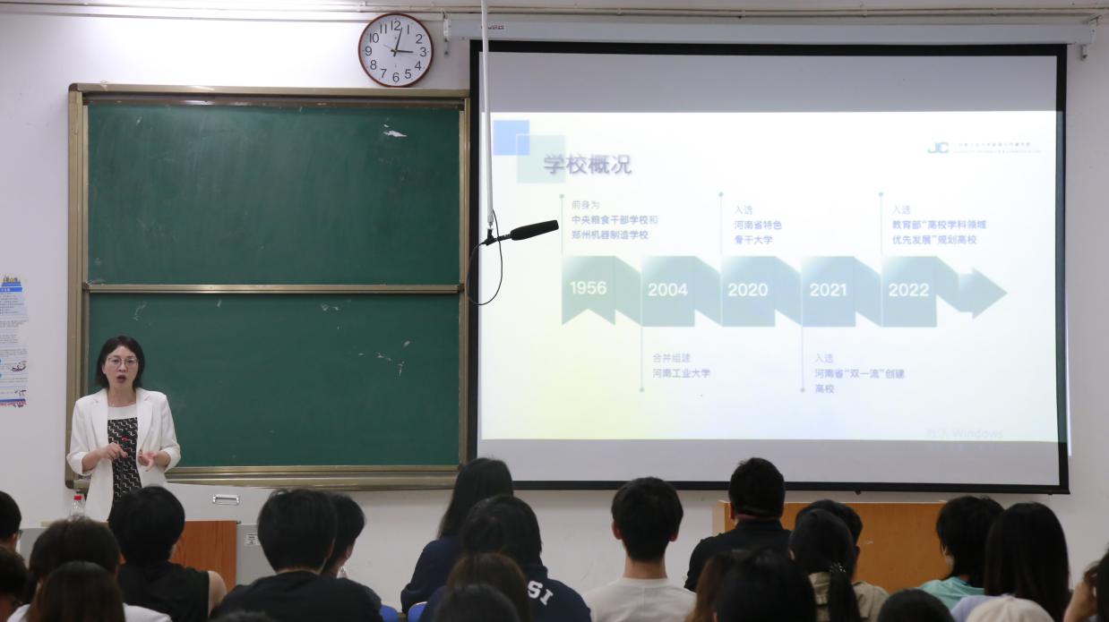 宣讲会上,夏颖介绍了河南工业大学的整体概况,详细介绍了新闻与传播学院的师资队伍、学科建设、科研情况、实践教学、校地校企合作以及研究生硕士点建设培养招生等情况。针对学生咨询的问题,夏颖进行了现场解答。(审核:高忱忱 余艳楷)
