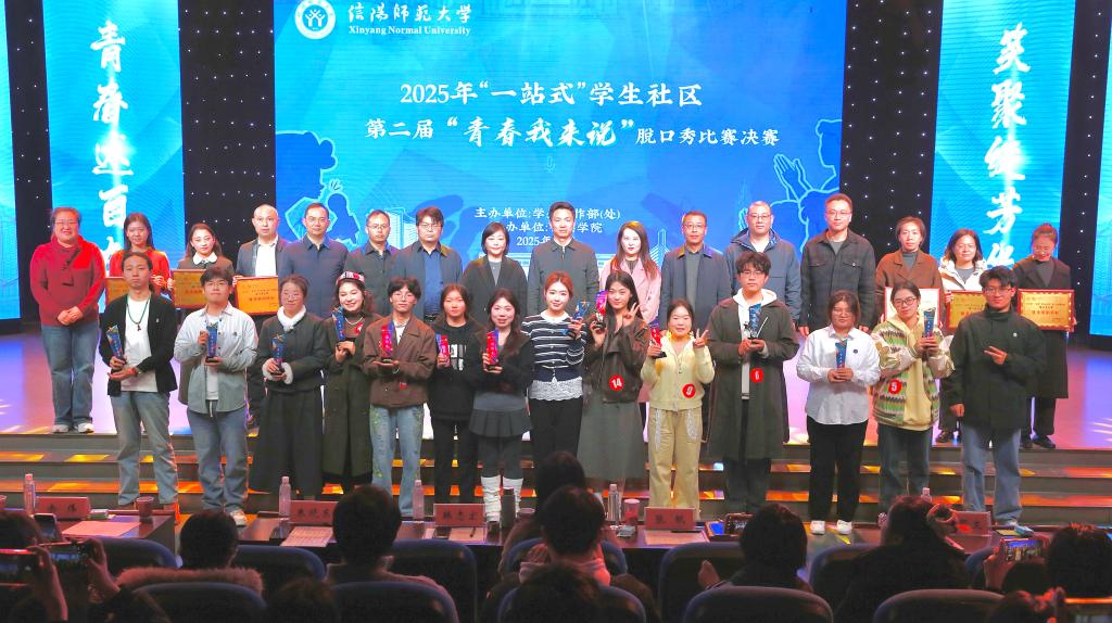 决赛结果采取评委现场打分和在场观众线上投票相结合的形式产生。经过激烈的角逐,致学书院马茹冰、音乐与舞蹈学院毛瀚綦、外国语学院付琳分别斩获冠亚季军。化学化工学院杨亚仑等12位同学荣获“爆梗王”“最佳表演奖”“最佳人气奖”和“最具深度奖”奖项。化学化工学院、外国语学院、教师教育学院、医学院、致学书院和信阳理工学院荣获优秀组织单位。
