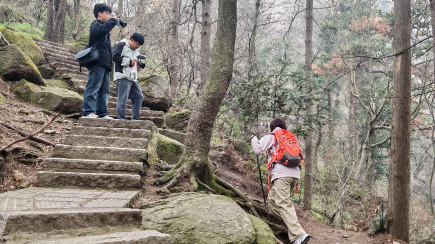 采风创作期间,各团队深入景区,围绕历史、生态、人文三大维度展开创作。有些团队聚焦颐庐、美龄舞厅旧址等历史建筑,关注鸡公山的民国历史与建筑遗存;有些团队将镜头对准山间的珍稀动植物与地质景观,记录南北分界线独特的生态资源;也有团队深入当地村落,采访山民,挖掘鸡公石传说等民间故事与人文记忆。鸡公山景区的每一处风景,都在青年创作者的镜头中焕发出新的生命力。