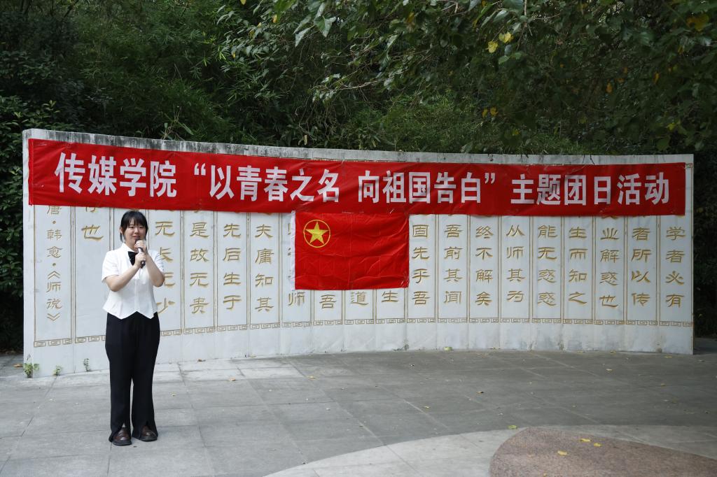 24级新生代表周寒薇发表了《礼赞七十五载峥嵘岁月》主题演讲,讲述了祖国七十五年的历史波澜壮阔、中华民族自立自强的伟大征程以及人民追求幸福生活的壮丽画卷。