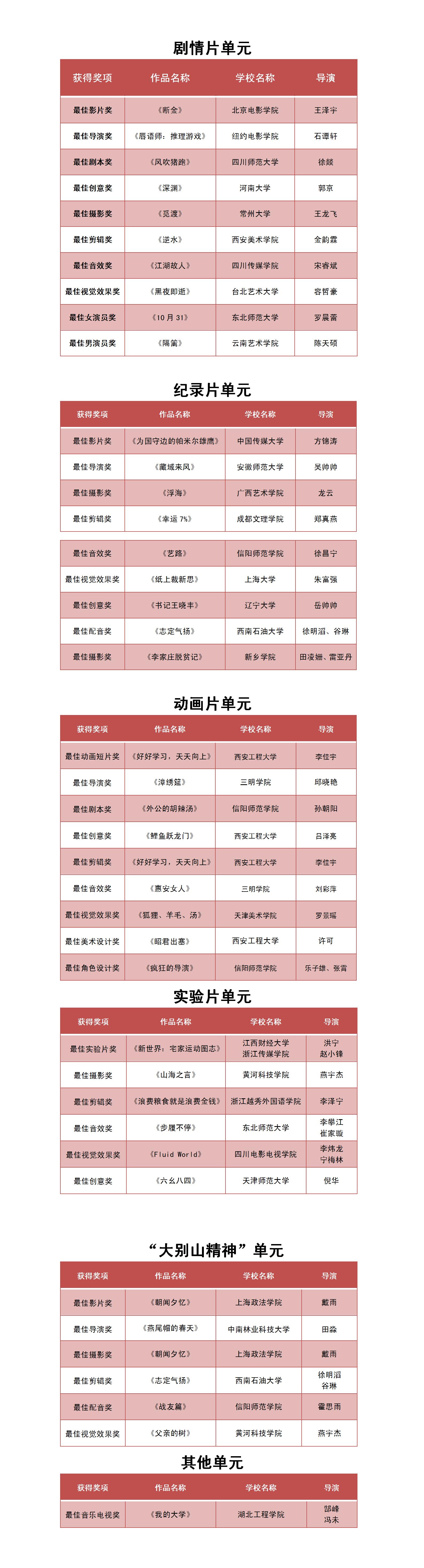 第四届大别山大学生微电影节获奖名单