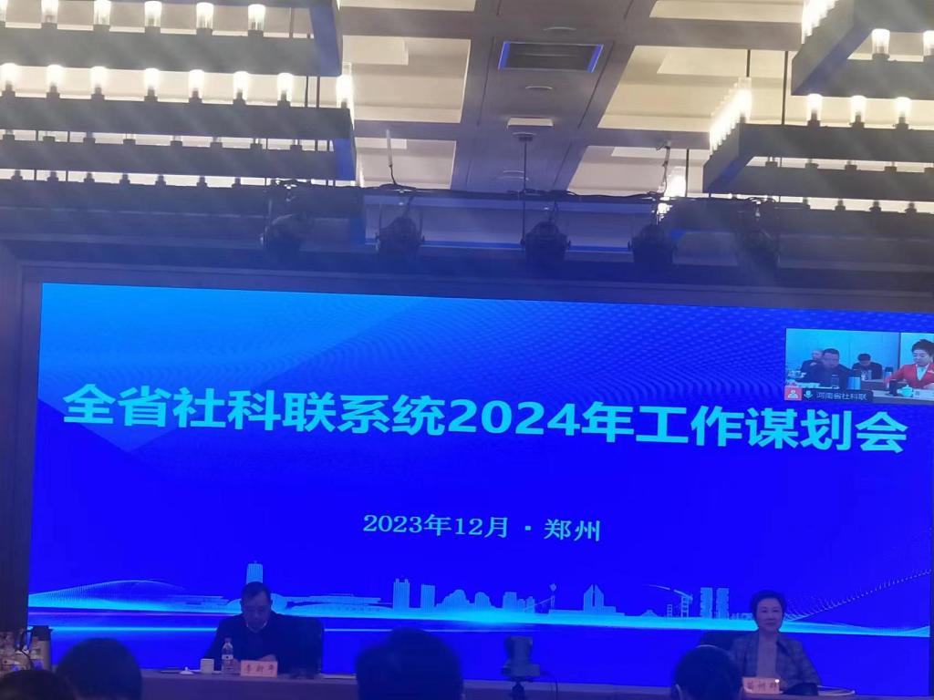 河南省社科联系统2024年工作谋划会2023年于12月14日至15日在郑州召开,各省辖市社科联、高校社科联、企业社科联,各有关学会、人文社科重点研究基地,省社科联各处室(部门)代表参加,我院院长、中原戏剧影视文化研究中心负责人吕东亮作为人文社科重点研究基地代表受邀参加谋划会。