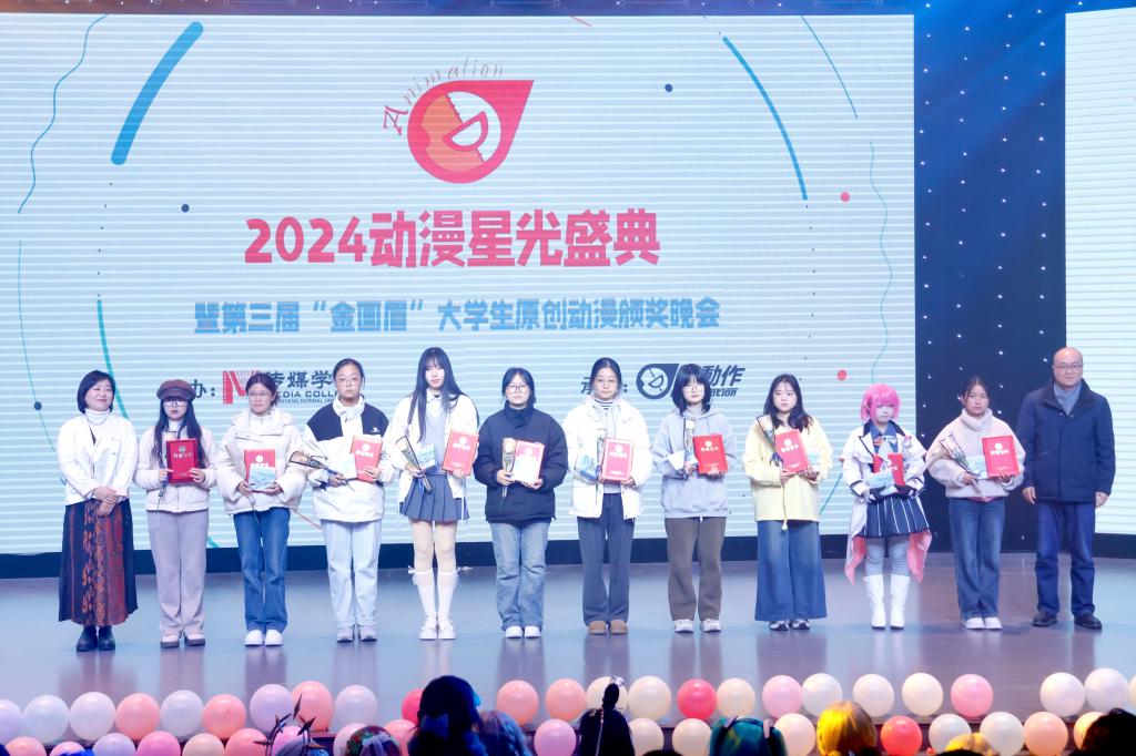 2024年12月10日晚,第三届“金画眉”大学生原创动漫大赛颁奖典礼在williamhill体育中文社科楼演播厅举行。中国动画学会会长、国家广电总局宣传司原司长马黎,校党委副书记、工会主席岳宗德出席颁奖典礼并为获奖选手颁奖,河南省人文社科重点研究基地中原戏剧影视文化研究中心师生以及漫动作动漫社学生代表参加颁奖典礼。