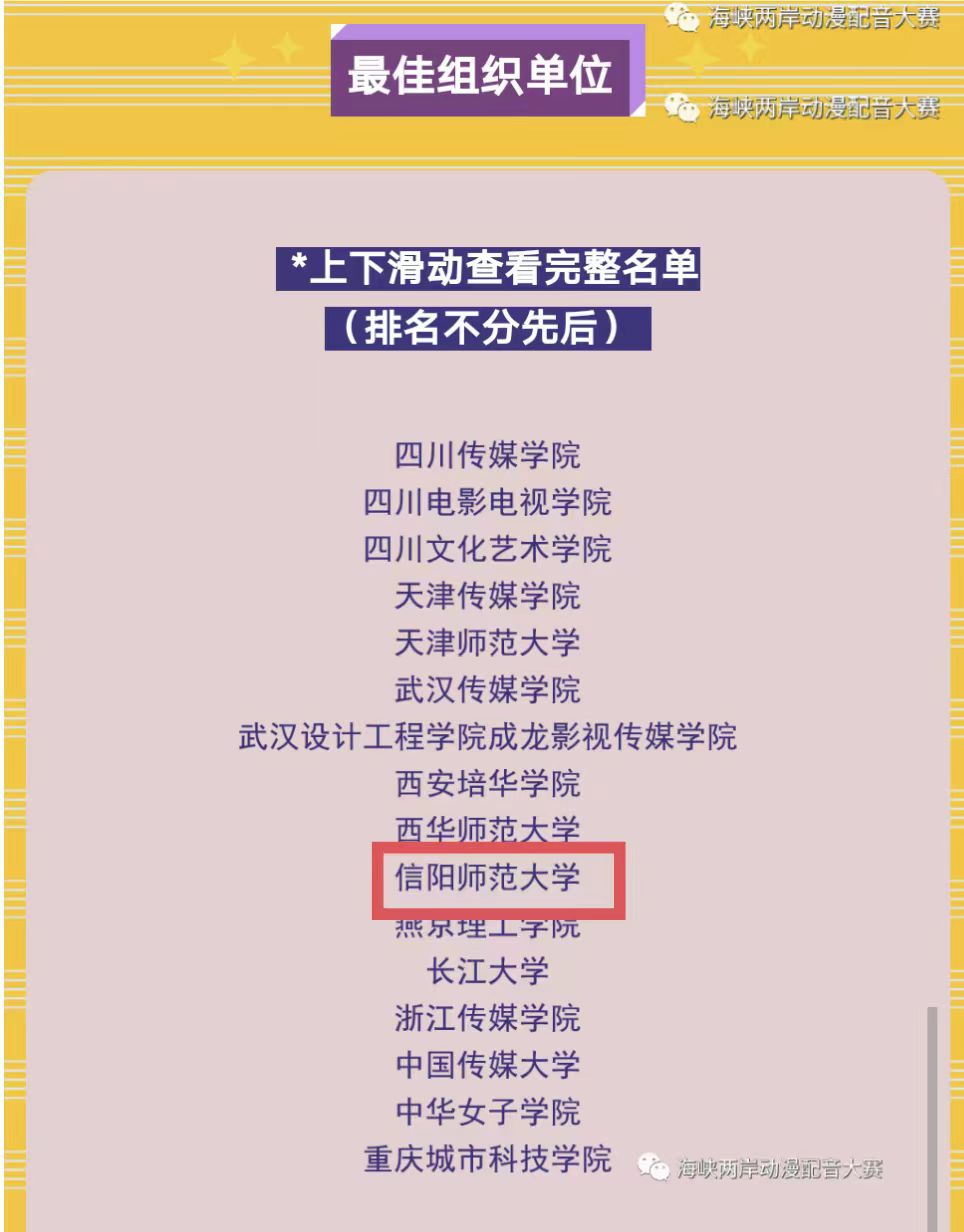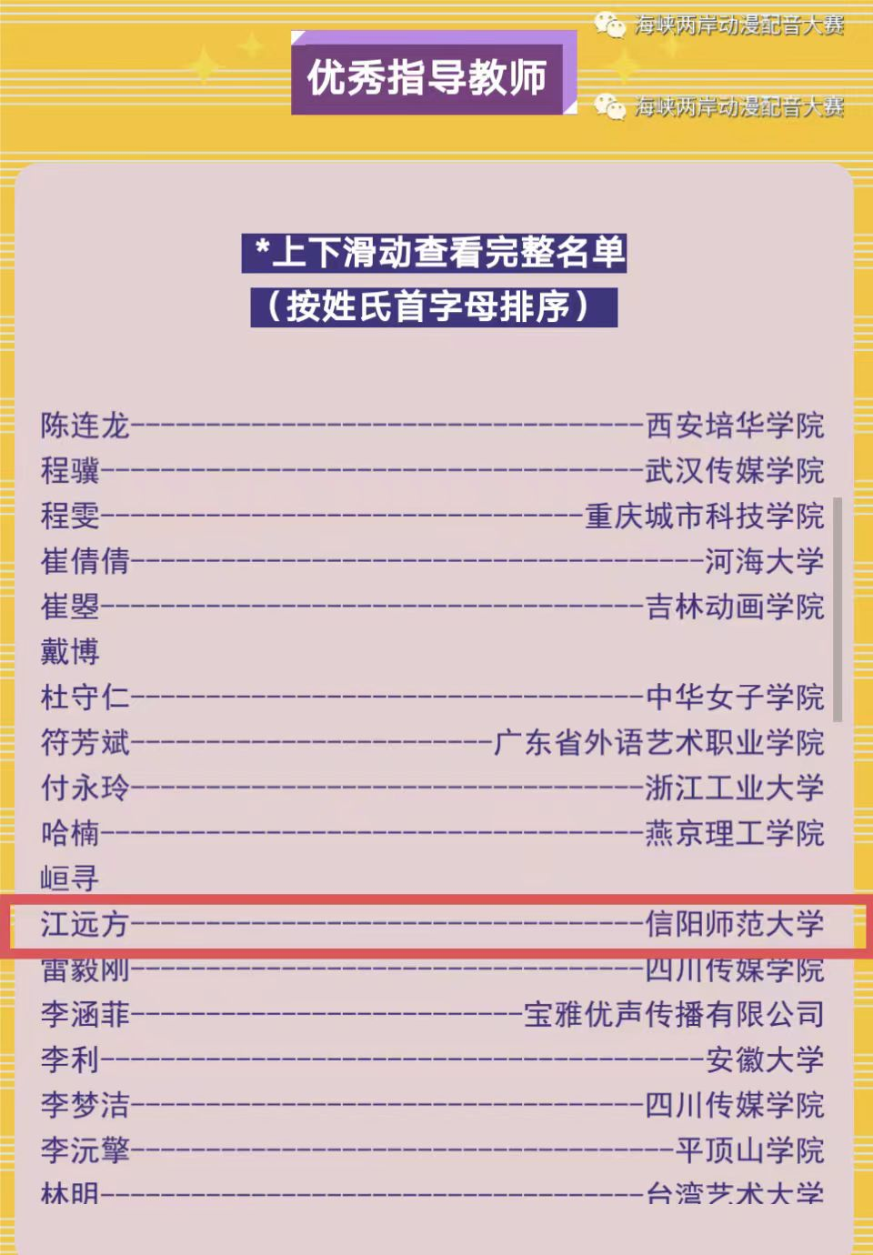 2023年10月27日,第一届海峡两岸动漫配音大赛在厦门举行。本次大赛由中国电视艺术家协会指导,国台办新闻发言人、国台办新闻局副局长、一级巡视员陈斌华,中国电视艺术家协会分党组成员、副秘书长高健等领导和嘉宾出席,并为两岸获奖选手们颁奖。河南省人文社科重点研究基地中原戏剧影视文化研究中心播音与主持艺术专业两个代表团,九名优秀学子刘玮驿、詹雅婷、秦子玉、李逸、周宸杰、李洪沛、李海睿、王怡迪、曹静怡荣获入围优秀奖;河南省人文社科重点研究基地中原戏剧影视文化研究中心江远方老师荣获“优秀指导老师”称号;williamhill体育中文荣获“优秀指导单位”称号。